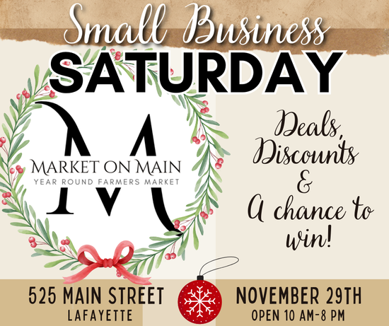 Saturday November 29th we will be offering gift bags for the first 15 shoppers, deals throughout the day and enter to win prizes! 525 Main Street, Lafayette. 10am-8pm