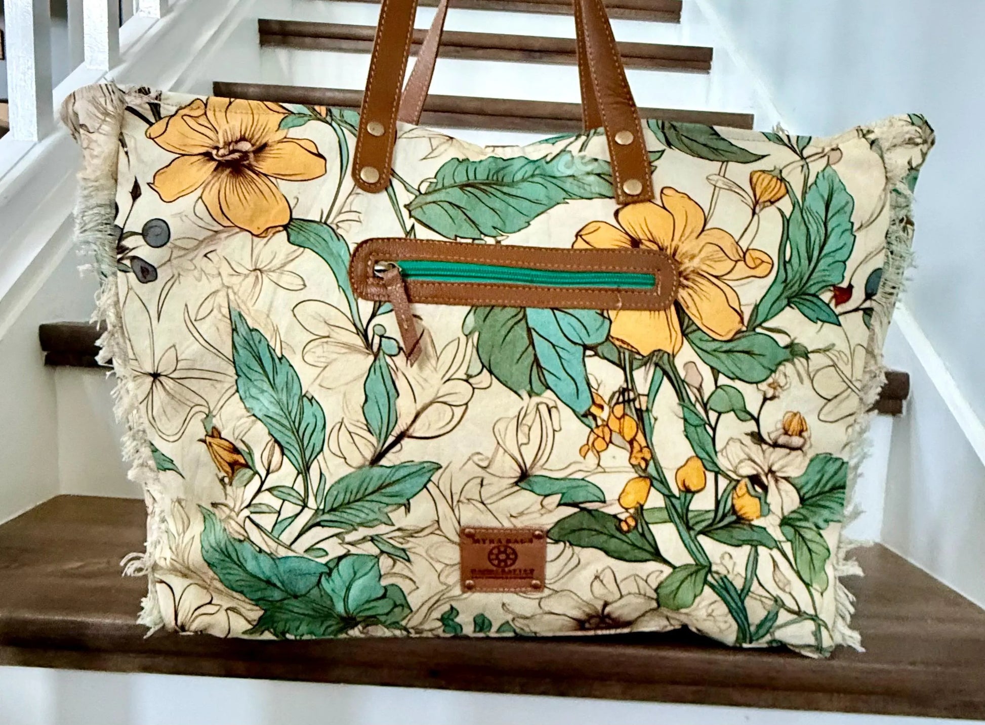 *Tropical floral upcycled canvas with matching fringe