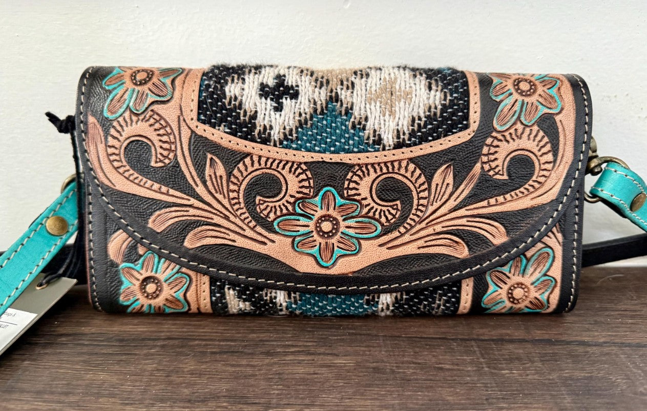 *Matching Hand Tooled Leather Floral Crossbody Strap, removeable with lobster clasp